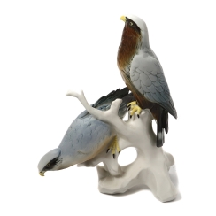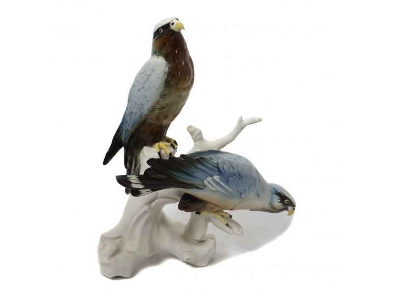 Фарфоровая фигура (статуэтка) "Пара соколов на ветке" (Два сокола). Ручная подглазурная роспись.