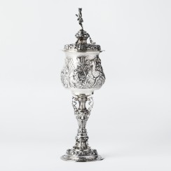 371094 - Кубок с крышкой, Германия, г. Ханау, 916 гр, 13 лотов, максимальная высота 42 см, высота по край 29,5 см, диаметр основания 12,2 см, диаметр верха 10,7 см |