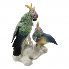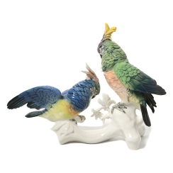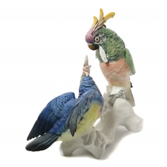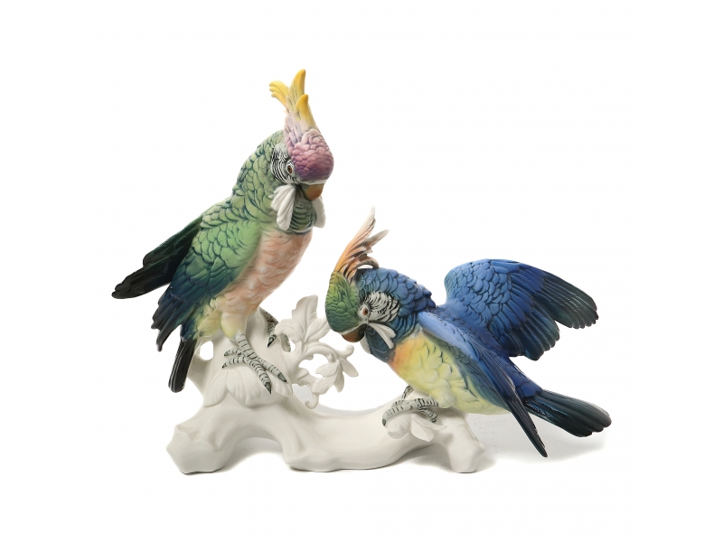 Фарфоровая фигура (статуэтка) "Пара попугаев какаду" (Два какаду). Ручная подглазурная роспись.