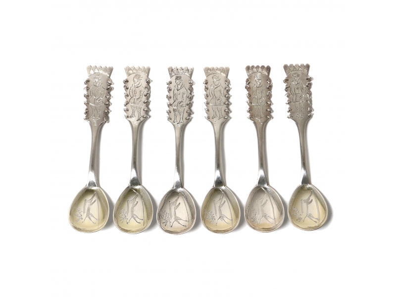 Длина: 11,3 см. Общий вес: 80 граммов серебра 830 пробы. =============================== Small silver tea spoons with rings, 6 pcs.