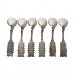 Небольшие серебряные чайные ложки с кольцами, 6 шт.