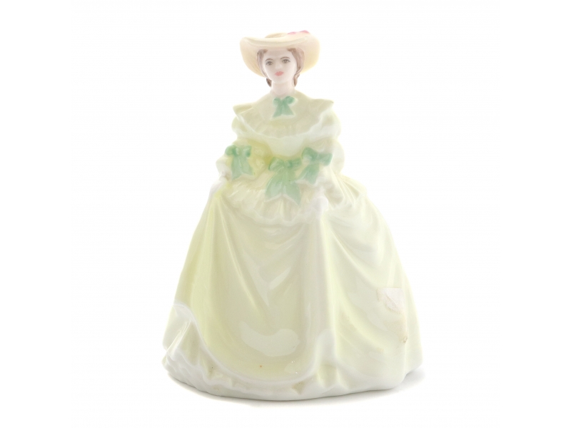 371647 - Девушка в светло-желтом платье с зелеными бантами и шляпее, высота 9,5 см, длина 7 см, ширина 5,5 см, Англия, Coalport