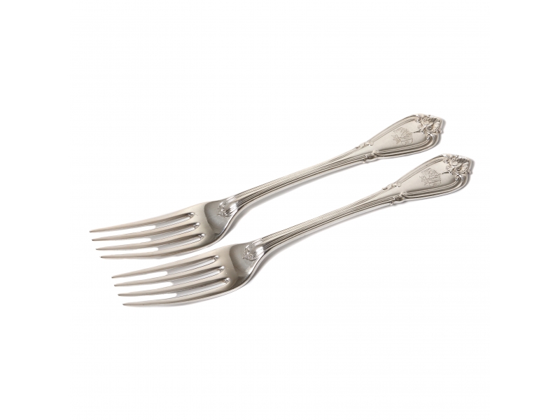 Столовые приборы изготовлены по случаю брака Corfitz Beck-Friis и Ebba Reenstierna, как свадебный сервис для дома супругов, символизирующий союз двух старинных дворянских родов Швеции. ========================= Small massive silver dinner forks, 2 pcs. Pattern "Greque".