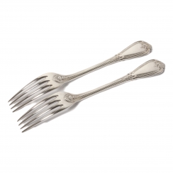 Небольшие массивные серебряные обеденные вилки, 2 шт. Дизайн "Greque" (Греческий).