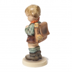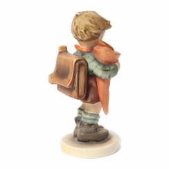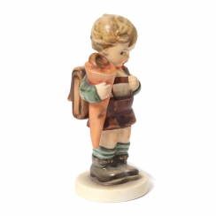 Фарфоровая фигура (статуэтка) "Мальчик с ранцем и кульком кренделей". Ручная роспись.