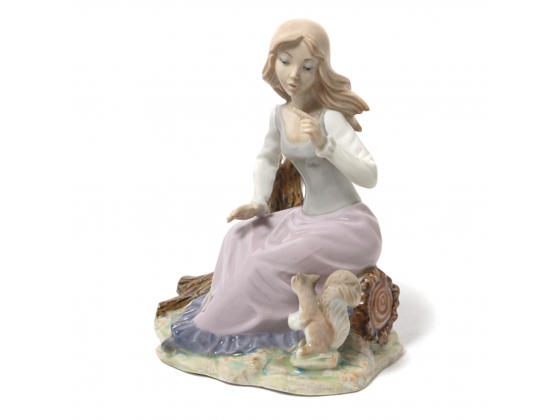 372693 - Девушка с белкой, высота 19,8 см, основание 16,5 х 13,5 см, Испания, Tengra