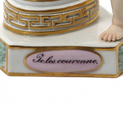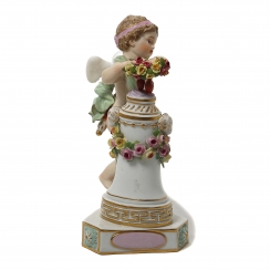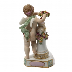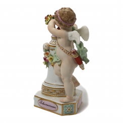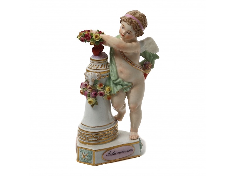 Фарфоровая фигура (статуэтка) "Амур с венком" (Я венчаю их) из серии "Амуры с девизами". Ручная роспись.