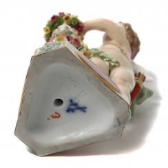 Германия, Meissen, 1815-1851 гг. Скульптор: Мишель Виктор Асье (годы работы: 1765—1779). Автор рисунков к серии Иоганн Элизар Цейссиг по прозвищу Шёнау (годы жизни: 1737–1806). Номер модели: F3. Номер мастера по лепке: 162. Клеймо производителя.