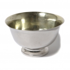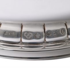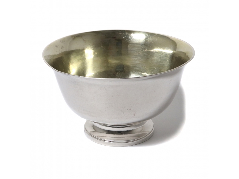 Высота: 9,6 см, диаметр верха: 20,8 см. Вес: 492 грамма серебра 830 пробы.
