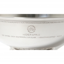 С гравировкой «Почётный приз SMR на дегустации масла и сыра в городе Кристианстаде». =============================== Silver bowl with engraved logo Svenska Mejeriernas Riksförening, SMR.