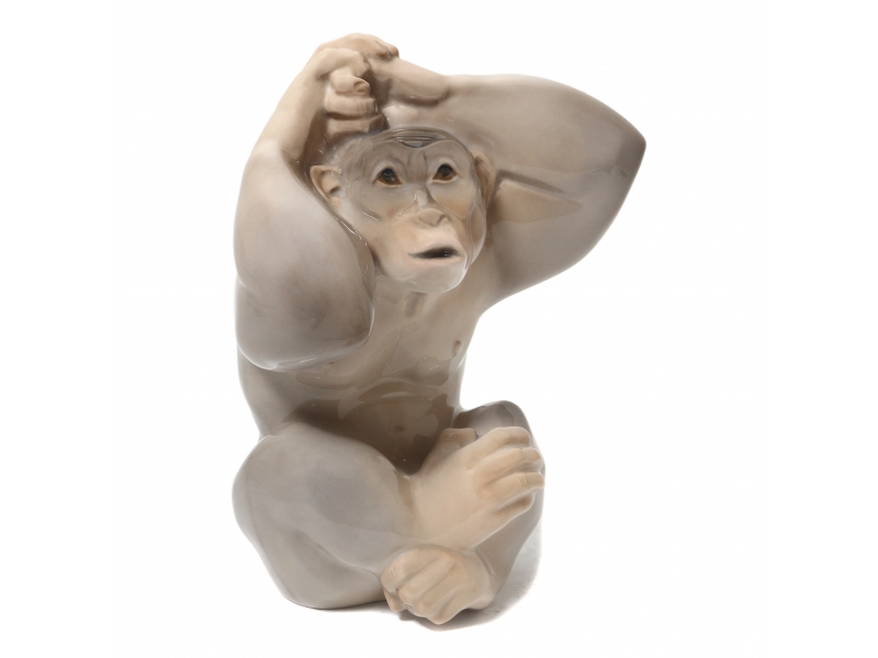 Фарфоровая фигура (статуэтка) "Шимпанзе". Ручная подглазурная роспись.