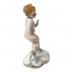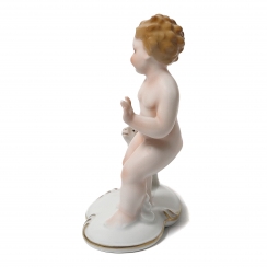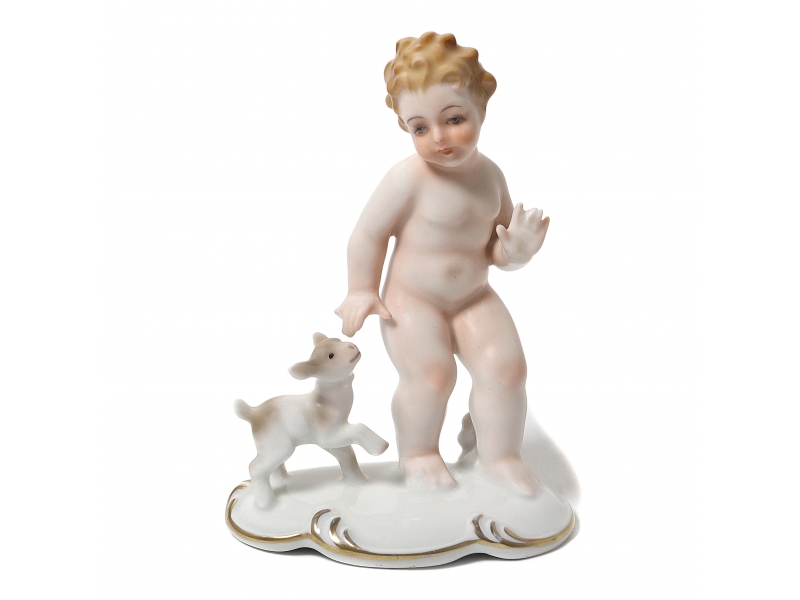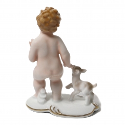373729 - Мальчик с козленком, высота 14 см, основание 10 х 6 см, Германия, Neuetettau