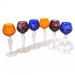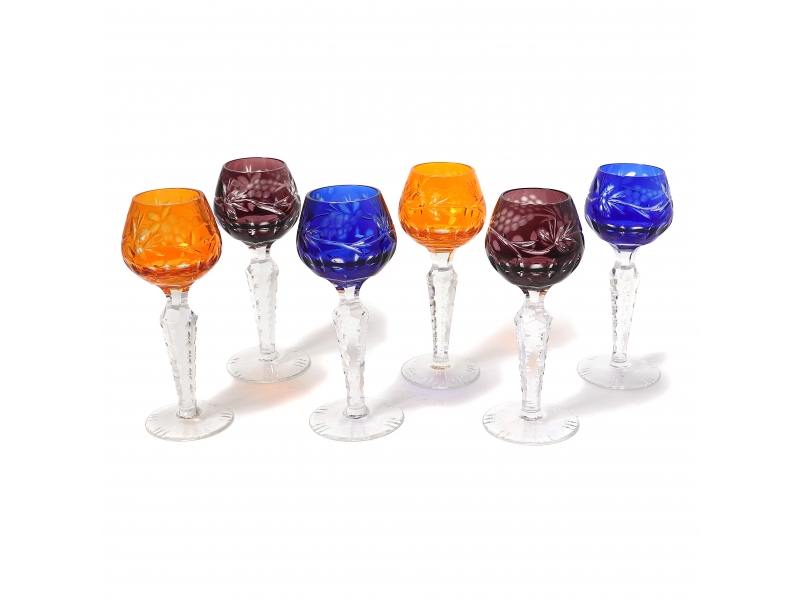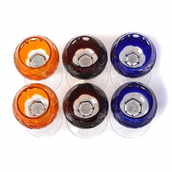 Высота: 13,3 см, диаметр основания: 5 см, диаметр верха: 3,5 см. Объём: 50 мл. ====================== Colored crystal shot glasses, 6 pcs.