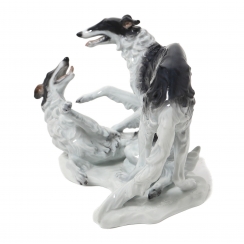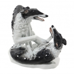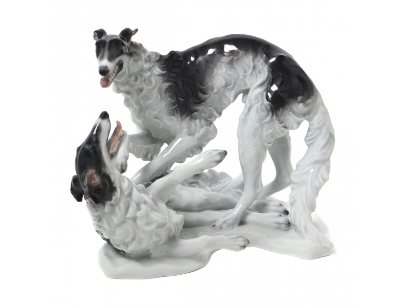 Фарфоровая фигура (статуэтка) "Пара играющих борзых" (Две борзые). Ручная подглазурная роспись.