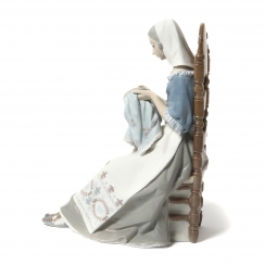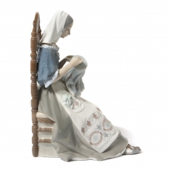 Фарфоровая фигура (статуэтка) "Вышивальщица" (Девушка на стуле вышивает). Ручная подглазурная роспись.
