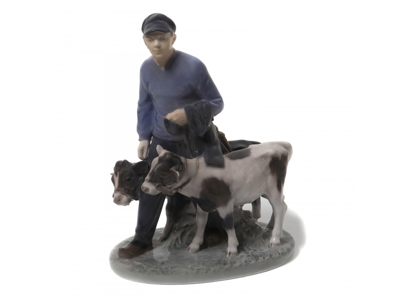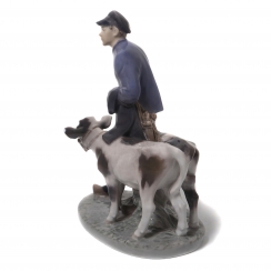 Фарфоровая фигура (статуэтка) "Мальчик с телятами". Ручная подглазурная роспись.