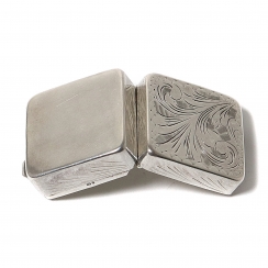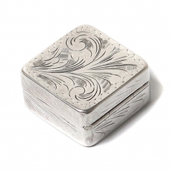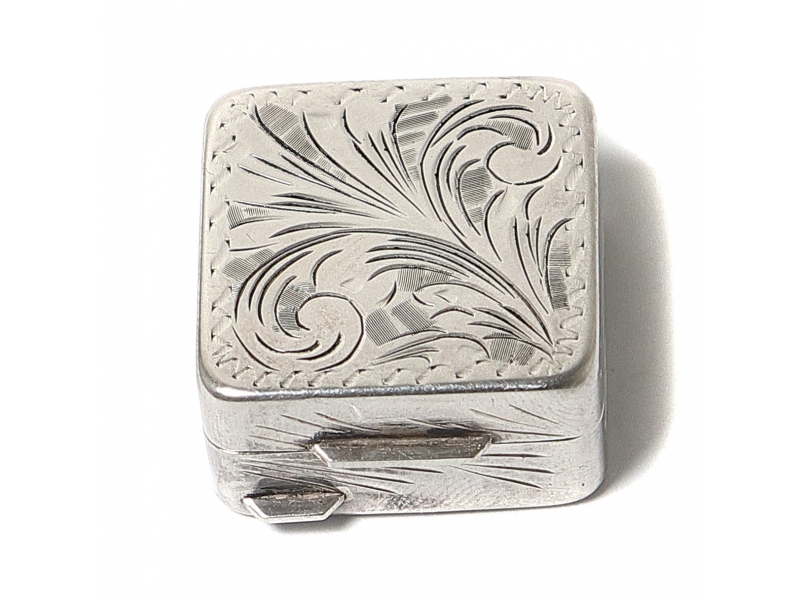 Размеры: 2,8 х 2,8 х 1,6 см. Вес: 13 граммов серебра 800 пробы. ========================= Silver pill box, decorated plant ornamentation.