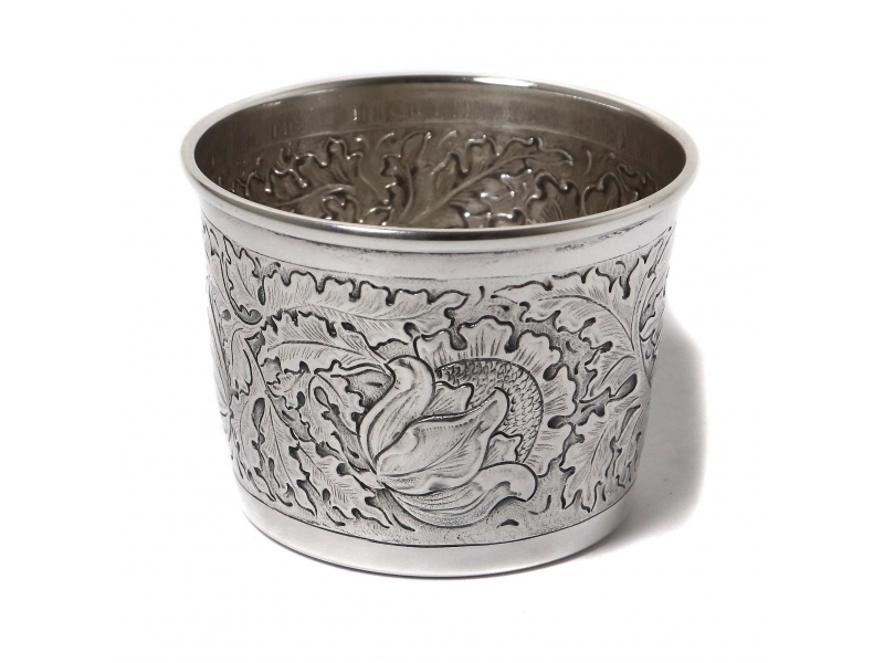 Дизайнерский серебряный стакан, декорирована растительным узором. Дизайнер Andersson Lisa.