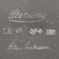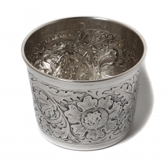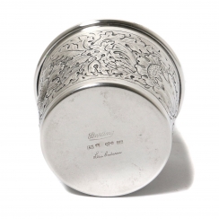 Высота: 5,5 см, диаметр верха: 7,3 см. Объём: 150 мл. Вес: 52 грамма серебра 830 пробы. ============================ Designer silver beaker (cup), decorated with plant patterns. Designer Andersson Lisa.