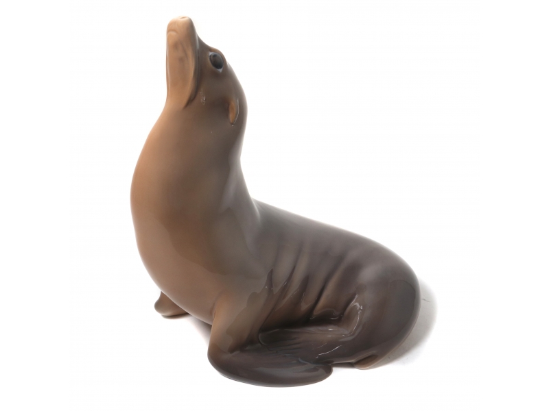 Фарфоровая фигура (статуэтка) "Морской лев". Ручная подглазурная роспись.