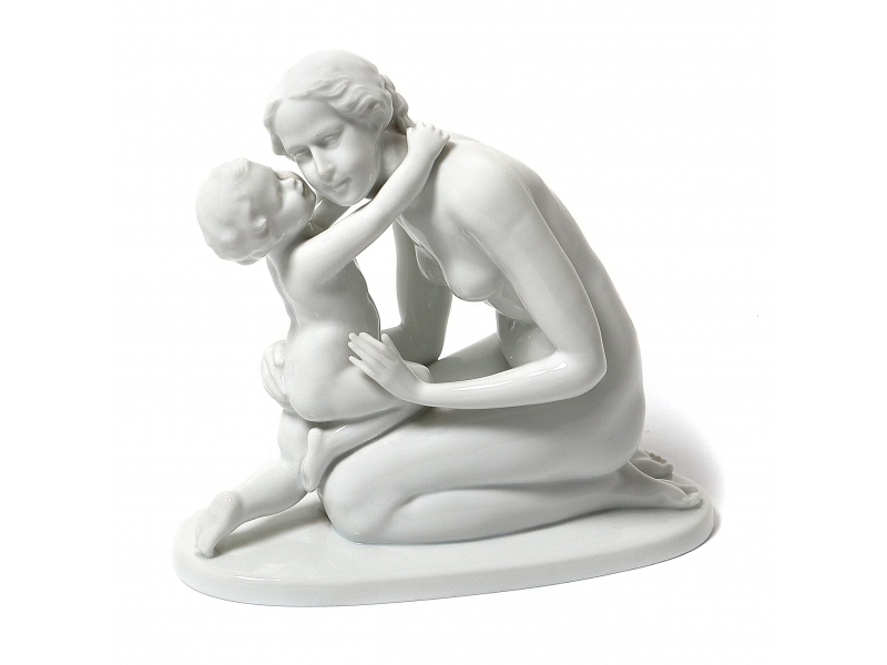 Существует такая же фигура высотой 26 см, номер модели: P757/2. ============================== Porcelain figurine "Mother & Child". White glaze. Blanc de chine.