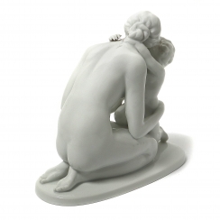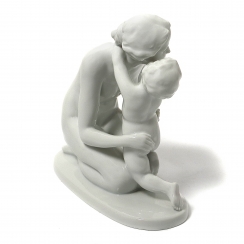 Фарфоровая фигура (статуэтка) "Обнаженные мать с ребенком". Нерасписанный белый фарфор. Белая глазурь.