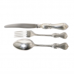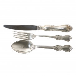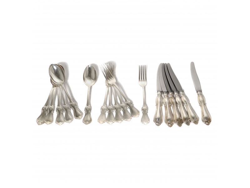Набор небольших серебряных столовых приборов на 6 персон, 18 предмета. Дизайн "Ольга" (Olga).