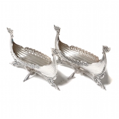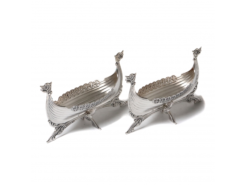 Две небольшие серебряные вазы (или солонки) в виде Кнорра (деревянного корабля викингов).