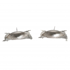 Максимальная высота: 6,5 см, длина: 11 см. Общий вес: 67 граммов серебра 830 пробы. ======================= Two small silver bowls (or salt cellars) in the shape in the form of Knorr (a wooden Viking ship).