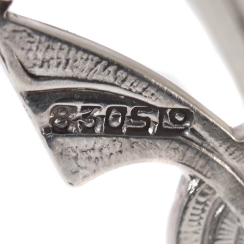 Maximum height: 6.5 cm, length: 11 cm. Total weight: 67 grams of silver 830 fineness.