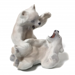 Фигуру продолжали производить также после объединения фабрик Royal Copenhagen и Bing & Grondahl (1985-1989) под брендом Royal Copenhagen, с новым номером модели - 085. Данная модель встречается в двух видах росписи: белый и 1233 дизайн росписи - коричневый. ======================================= Porcelain figurine "Polar white bears cubs playing". Hand-painted underglaze.