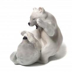 Фарфоровая фигура (статуэтка) "Играющие белые полярные мишки". Ручная подглазурная роспись.