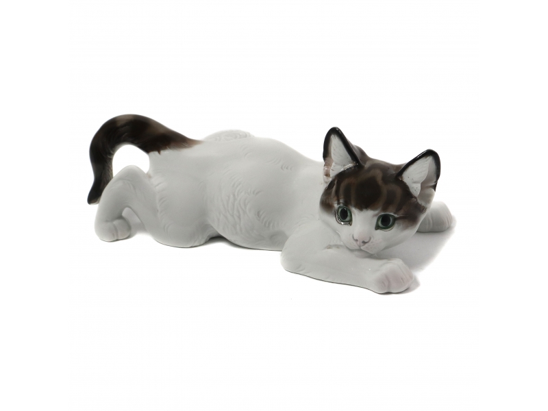 Фарфоровая фигура (статуэтка) "Ползущий котёнок". Ручная подглазурная роспись.
