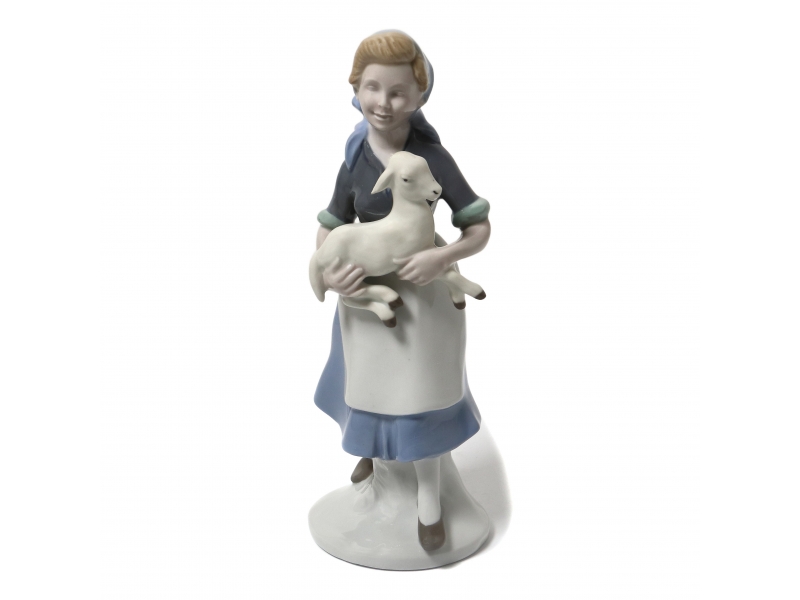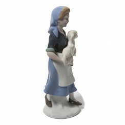 Фарфоровая фигура (статуэтка) "Женщина с козленком". Ручная подглазурная роспись.