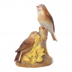 Фарфоровая фигура (статуэтка) "Коноплянки" (Пара коноплянок). Ручная роспись.
