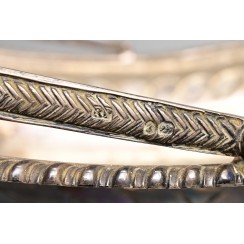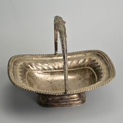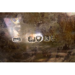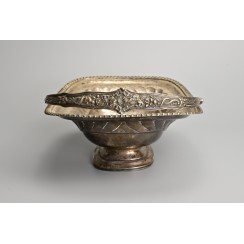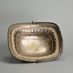 максимальная высота по край чаши 11,8 см, длина 32,2 см, ширина 25,5 см, высота по верх поднятой ручки 26,5 см