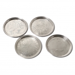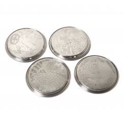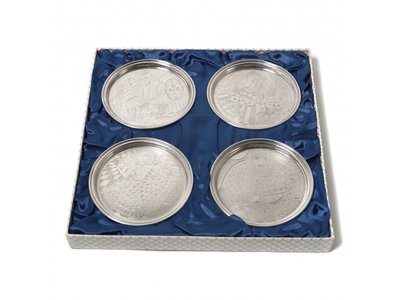 Четыре серебряные подставки под бокалы с символикой игральных карт. В оригинальной коробке.