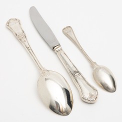 Информация о лоте 345909 - Серебряная сервировочная лопатка. Швеция, 1977 год 302175 - Серебряная сервировочная ложка. Швеция, 1967 год. 315843 - Кофейные ложки, 4 шт, 40 гр, 830 пр, 10 см 316975 - Щипцы для сахара, 12 гр, 830 пр, 8,3 см 394837 - Нож с серебряной ручкой, 148 гр, серебро 826 пр, 18,5 см 228382 - Обеденная ложка, 20 гр, 826 пр, 18 см 268368 - Чайная ложка, 13 гр, 830 пр, 12.5 см 311096 - Серебряная сервировочная ложка. Швеция, 1951 год 293819 - Серебряные кондитерские щипцы. Швеция, 1944 год 301090 - Серебряные пепельницы, 5 шт. Швеция, 1965 год |