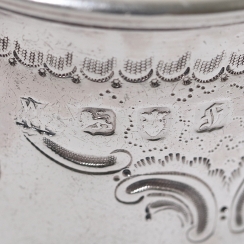 С выгравированным в картуше гербом с изображением оленя. ============================ Silver coffee pot, decorated with floral and foliate patterns.