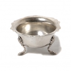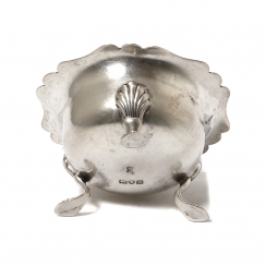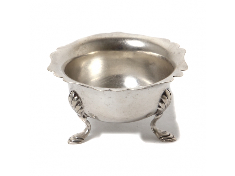 На внутренней поверхности несколько мелких коррозийных пятнышек. ========================== Silver salt cellar on legs.