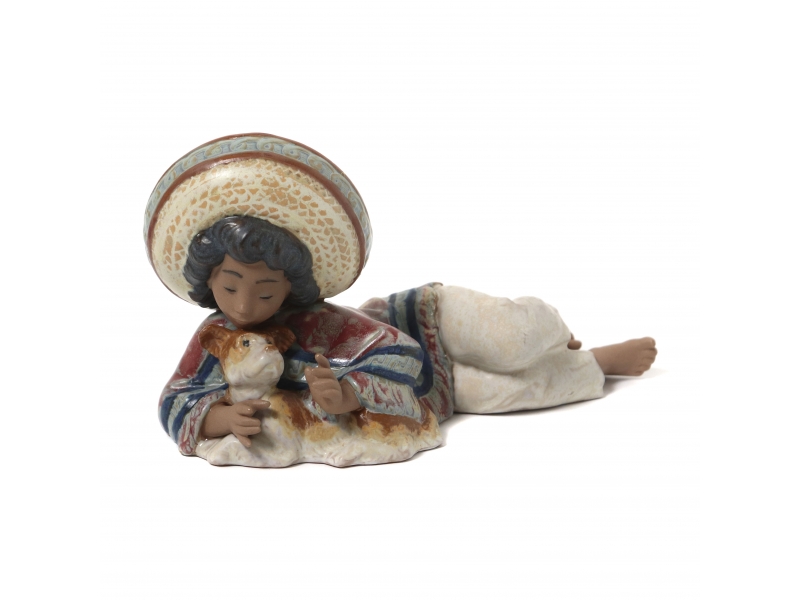 378269 - Испанский мальчик, лежащий с собакой, высота 9,5 см, длина 16,7 см, Испания, Lladro