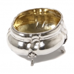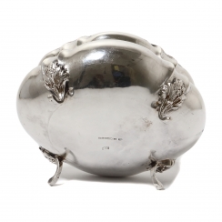 Высота: 6,5 см, размеры верха: 9,4 х 7,4 см. Вес: 168 граммов серебра 830 пробы.