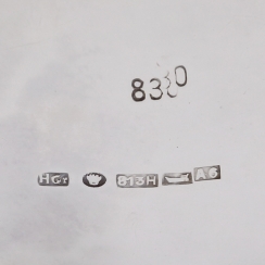 Height: 6.5 cm, size of the top: 9.4 x 7.4 cm. Weight: 168 grams of silver 830 fineness.