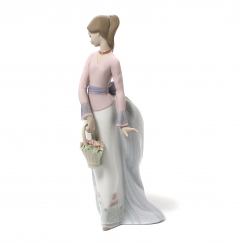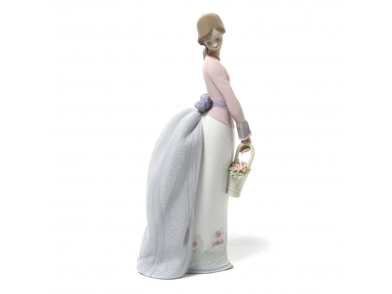 Фарфоровая фигура (статуэтка) "Корзина любви" (Девушка с корзиной цветов). Ручная подглазурная роспись.
