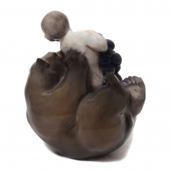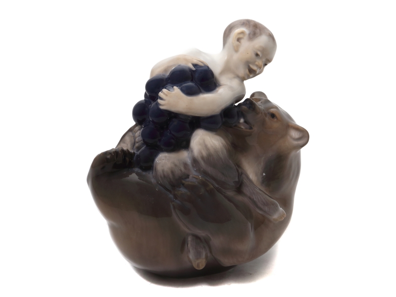 Фарфоровая фигура (статуэтка) "Фавн с виноградом, играющий с медведем". Ручная подглазурная роспись.