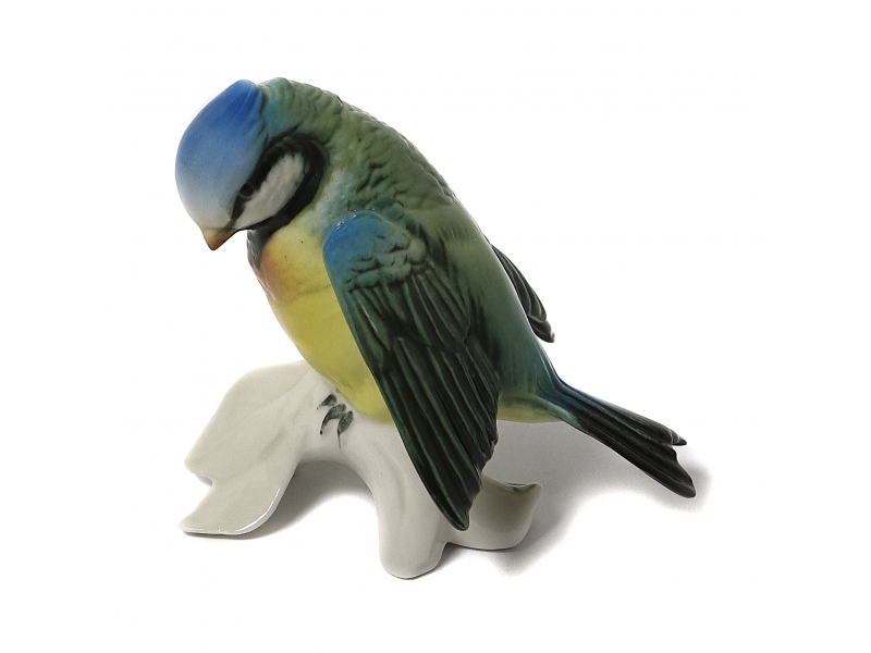 Фарфоровая фигура (статуэтка) "Синица-лазоревка". Ручная подглазурная роспись.