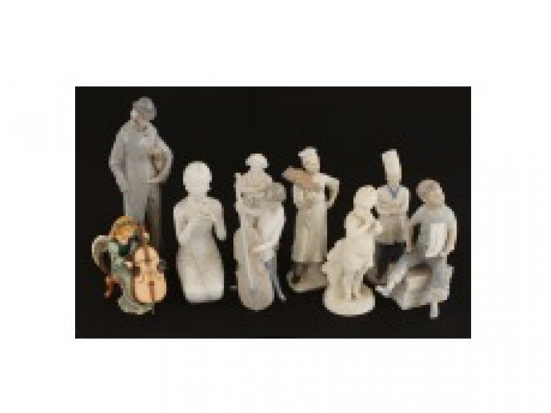 362741 - Пекарь, выссота 26 см, основание 9,5 х 8,5 см, Германия 283479 - Ангел с виолончелью, высота 16,5 см, длина 12,5 см, ширина 9 см, Германия, Goebel 215430 - Балийская девушка с цветком, Rorstrand_Balinese 352579 - Бетховен, высота 23,5 см, основание 7,7 х 7,7 см, Европа 249719 - Скрипач, высота 35 см, основание 9,2 х 9,5 см, Испания, Lladro