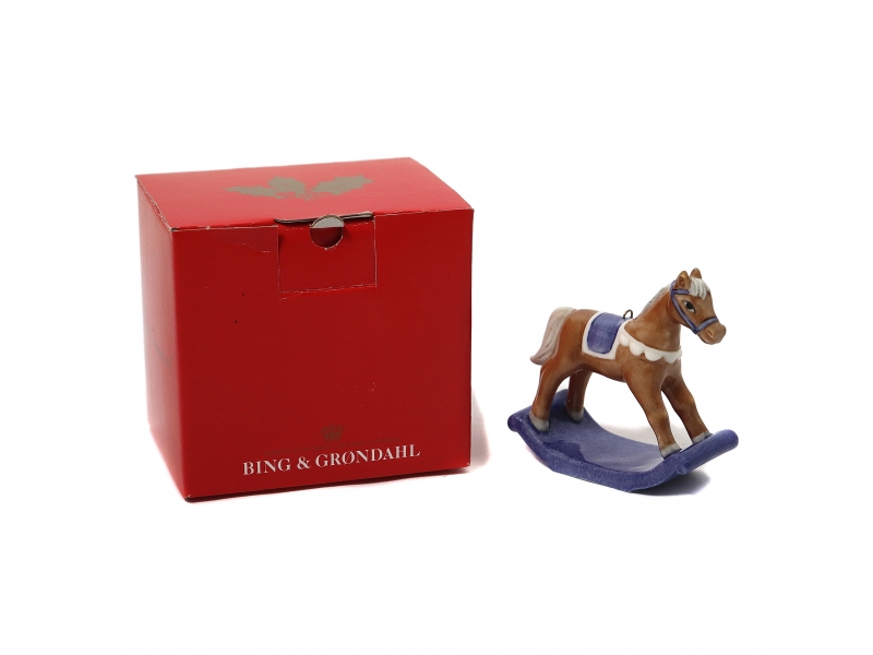 Фарфоровая елочная игрушка "Лошадка-качалка" из серии "Детское Рождество". Ручная подглазурная роспись. В оригинальной коробке.