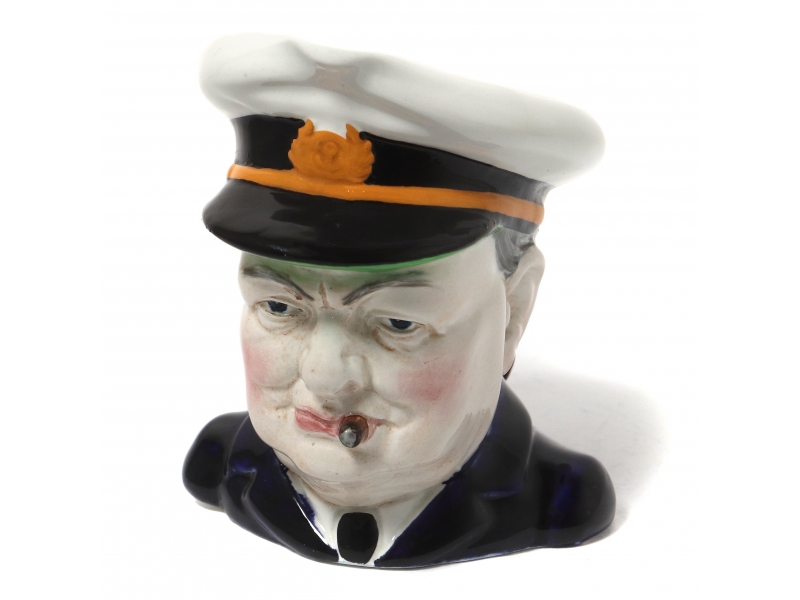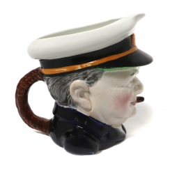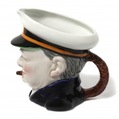 Без сколов, повреждений и без реставраций. ========================== Ceramic Toby Jug or Character Jugs "Sir Winston Churchill" with an inscription on the bottom "We shall defend every village, every town, and every city, Churchill 1940-1965". Hand-painted.