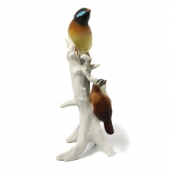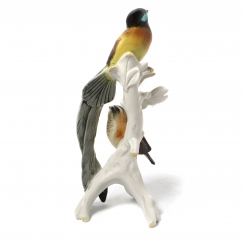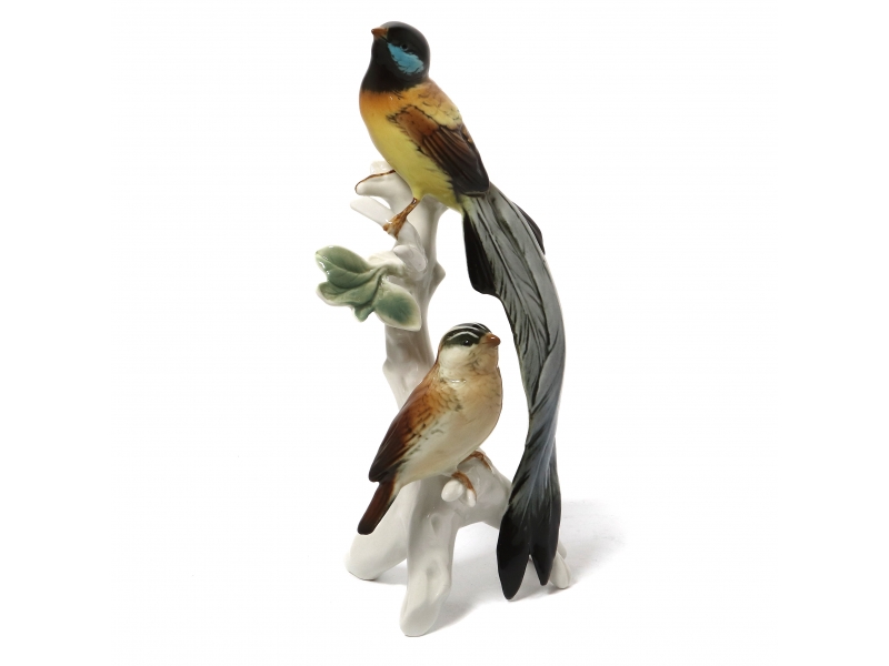 Фарфоровая фигура (статуэтка) "Райские вдовушки на ветке". Ручная подглазурная роспись.